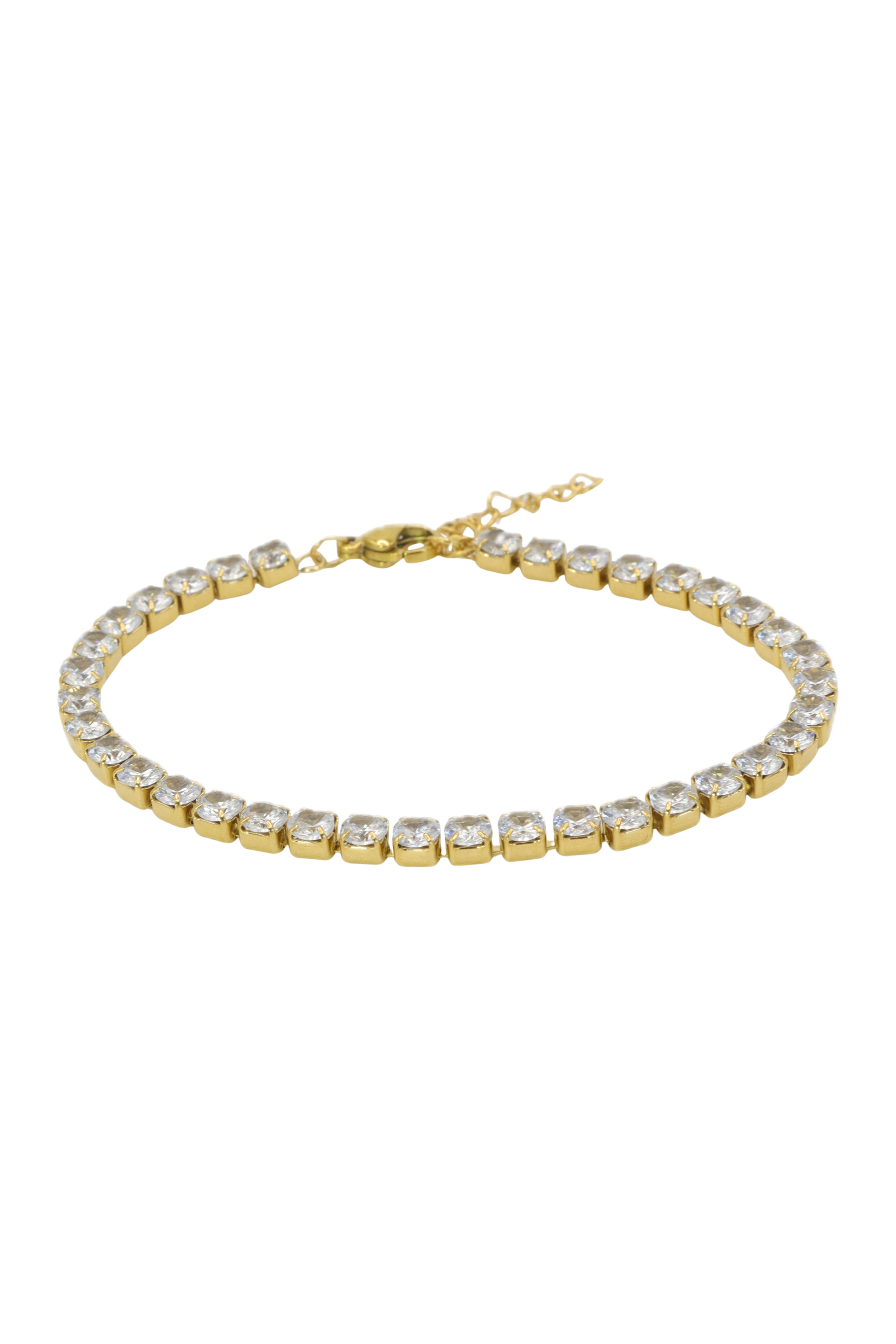 Brillo sutil, estilo que destaca. Con una medida ajustable de 18 + 3 cm, esta pulsera en acero inoxidable chapada en oro está adornada con zircones blancos, reflejando elegancia en cada movimiento. Perfecta para un look delicado pero con carácter.