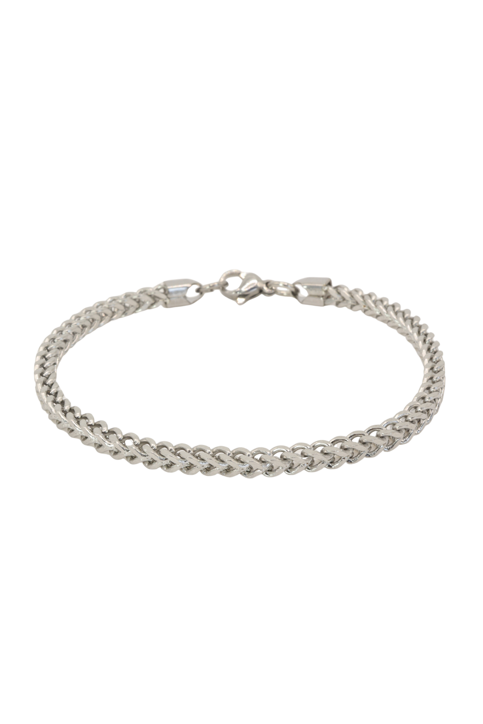 Limpia y versátil. Con un grosor de 3 mm y largo de 19 cm, esta pulsera en acero inoxidable color silver es el detalle perfecto para un look moderno y equilibrado.