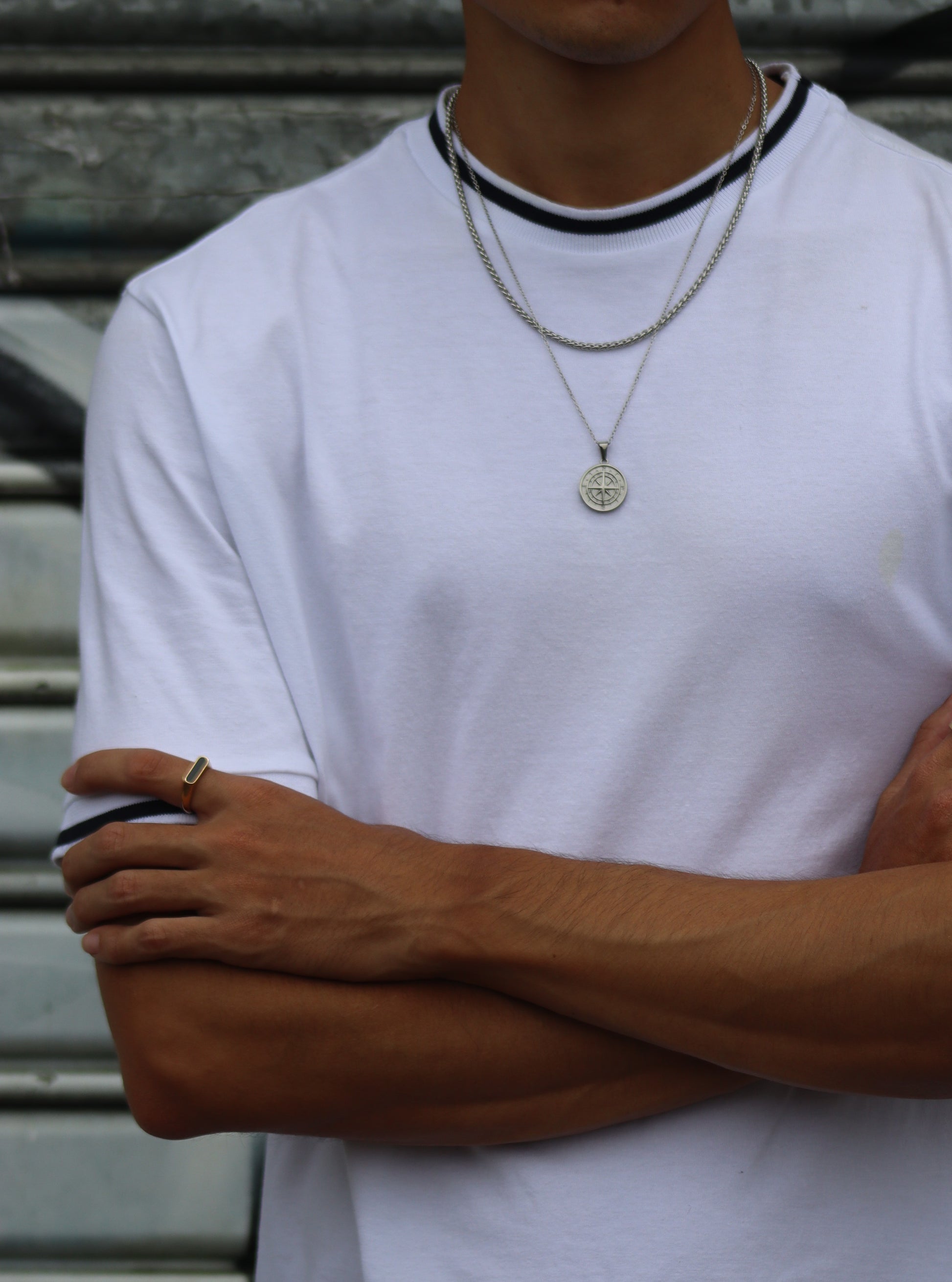Esta cadena doble ha sido diseñada para destacar tu estilo con elegancia y carácter. Su combinación de longitudes crea un efecto visual moderno y equilibrado, mientras el dije de brújula simboliza dirección, propósito y autenticidad. Ideal para quienes buscan una joya con personalidad y significado.