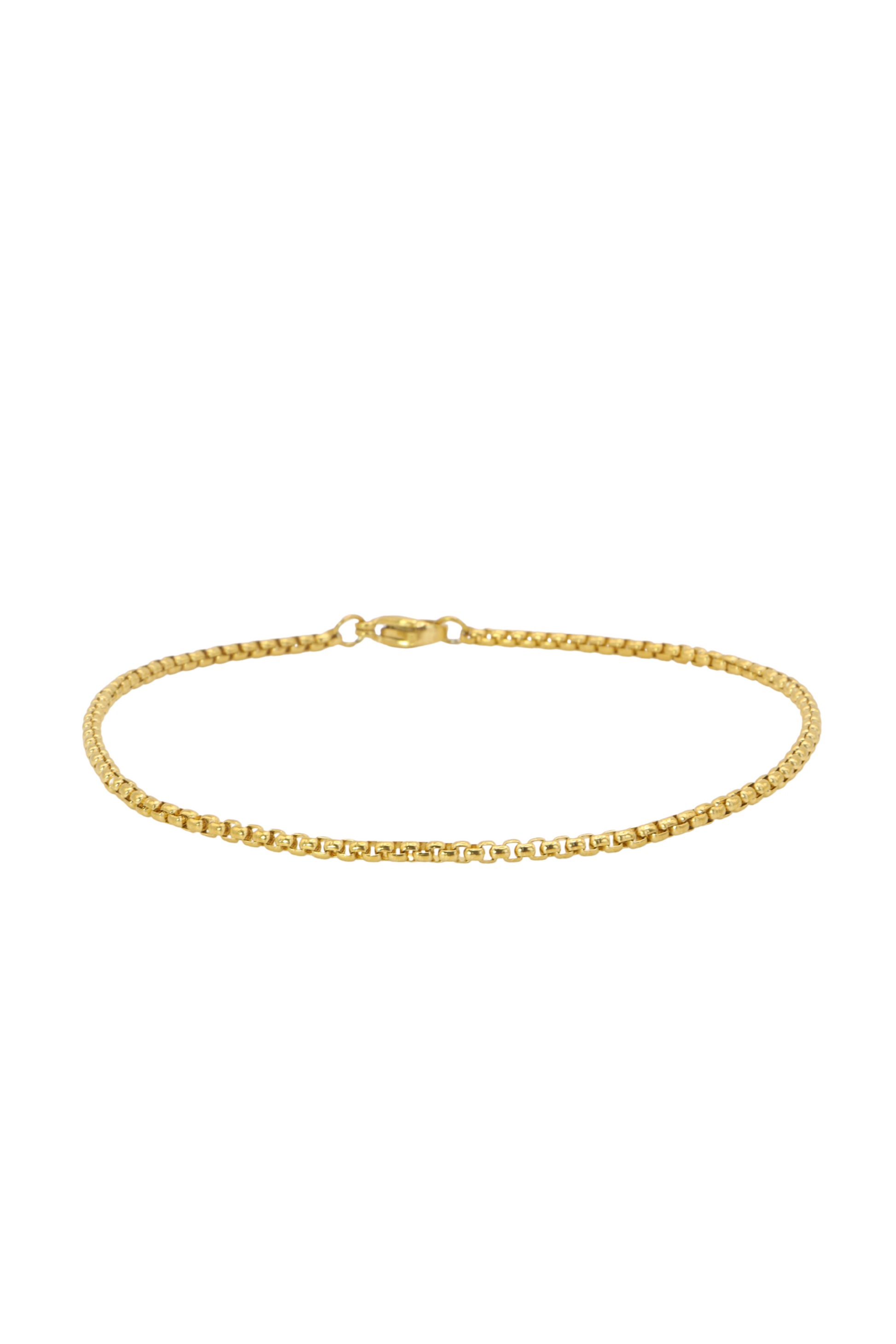 Delgada y elegante, esta pulsera de 2 mm de grosor y 21 cm de largo, hecha en acero inoxidable chapado en oro, aporta un toque sutil y sofisticado a cualquier estilo.
