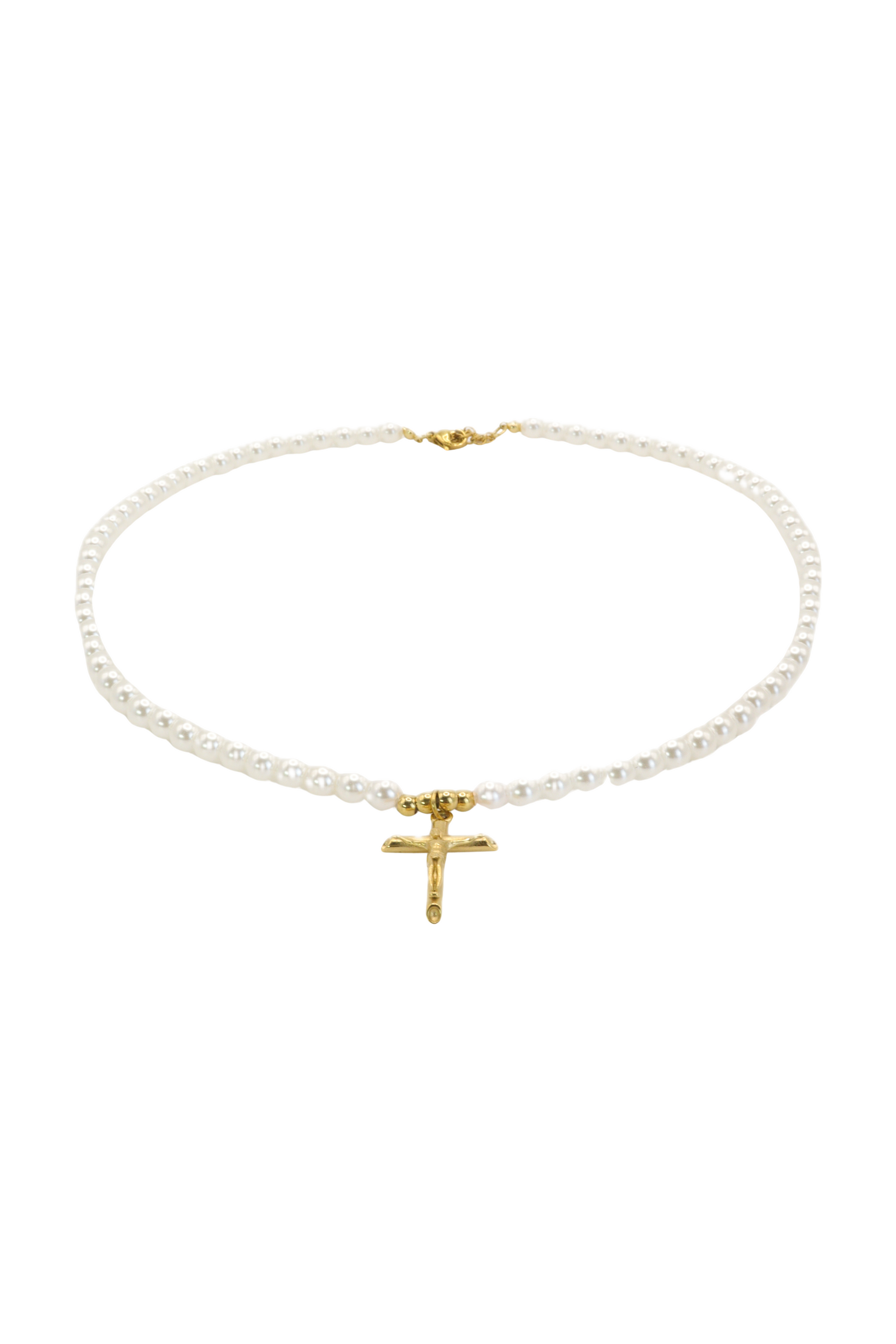 Cadena de perlas con cruz chapada en oro 18K